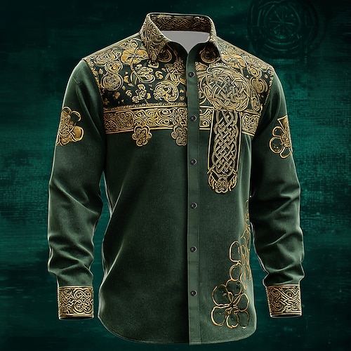 Per uomo Stampa Floreale Etnico Fiori Camicia Camicia Western Camicia da cowboy Manica Lunga Vintage Retrò All'aperto Vacanza Primavera Autunno Collo ripiegato Stampa 3D Camicia tipo lino Nero grigio