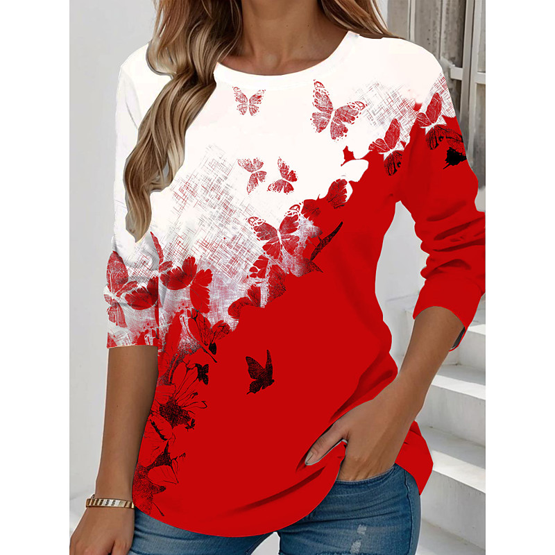 Women's T shirt Long Sleeve Crew Neck Long Sleeve Tunic Floral Elegant Cute Regular Tops Daily Going out Weekend Print Black Red Blue Purple Green Spring Fall Prefall