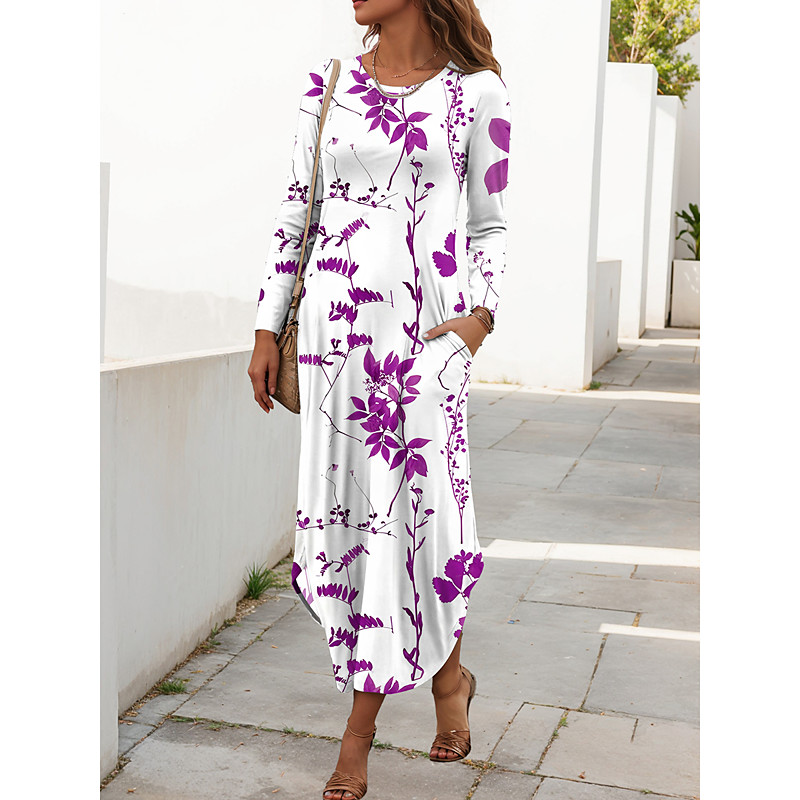 Women's Maxi Dress Sheath Dress T Shirt Dress Tee Dress Vacation Casual Daily Regular Fit Floral Graphic Long Sleeve Crew Neck Red Blue Purple Green Summer Spring Fall