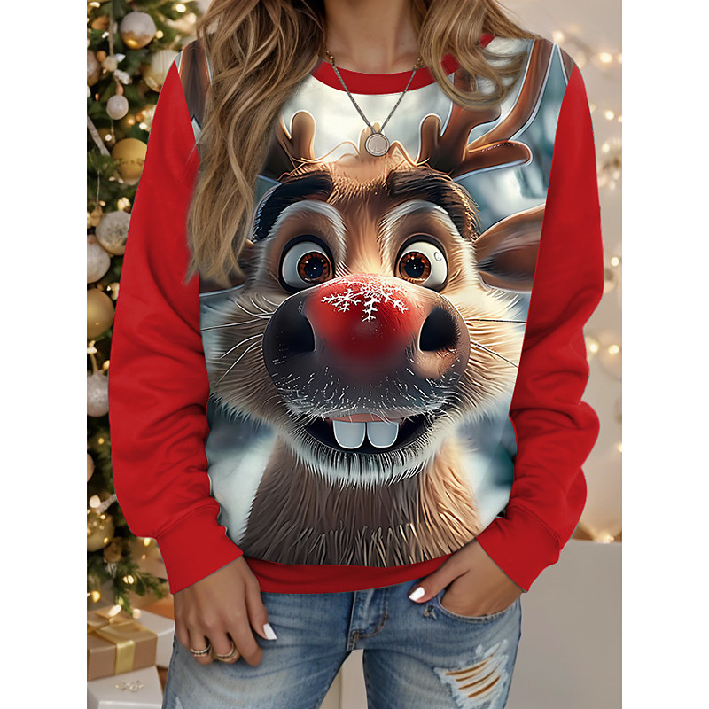 Christmas Women's Pullover Sweatshirt Cat Casual Long Sleeve Crew Neck Regular Tops Street Dailywear Casual Black Yellow Wine Red Blue Spring Fall Winter