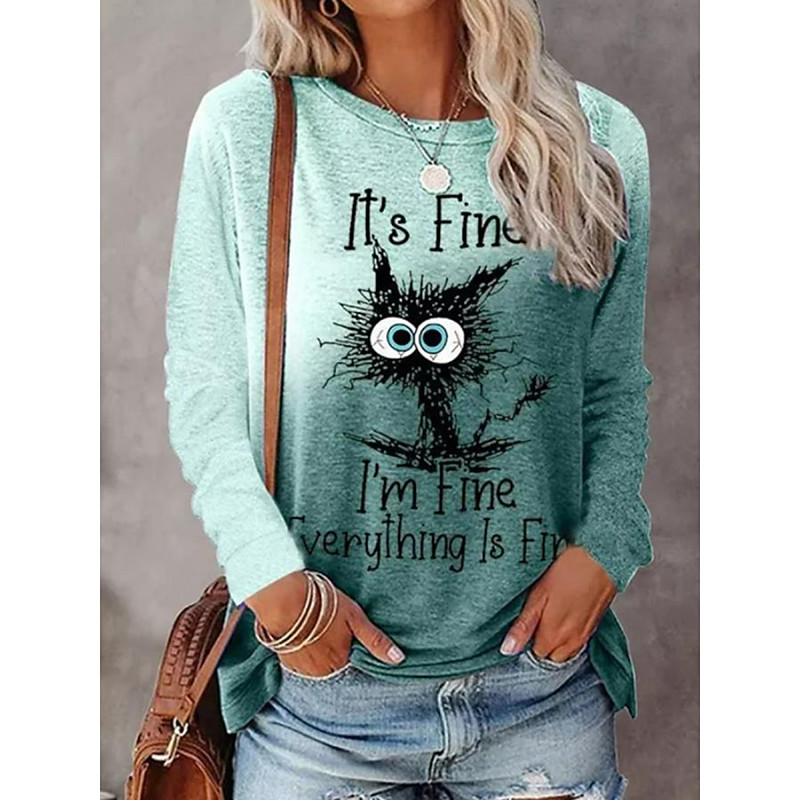 Women's T shirt Long Sleeve Crew Neck Long Sleeve Tunic Animal Letter Modern Casual Regular Tops Daily Weekend Print Black White Yellow Red Sky Blue Fall Winter Prefall