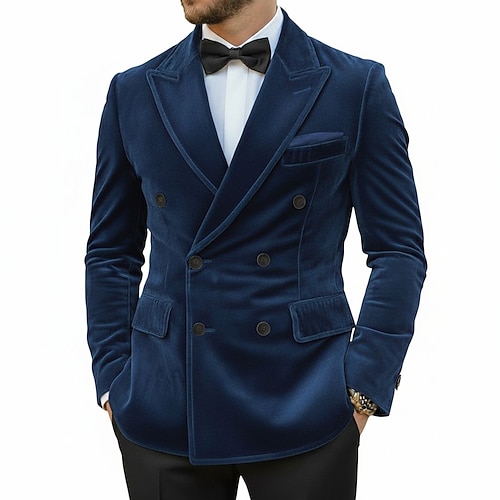 giacca blazer in velluto da uomo con chiusura a colletto, casual, tinta unita, rosso, blu, viola, vestibilità su misura, doppiopetto, sei bottoni