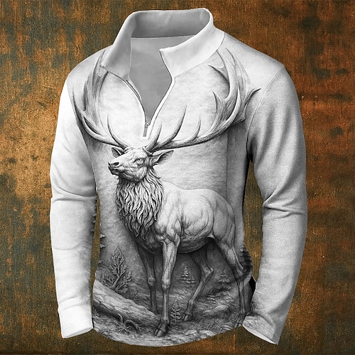 Per uomo Cervo Felpa 3D Con cerniera Casa Feste Lavoro Bianco Verde Autunno Tutte le stagioni progettista