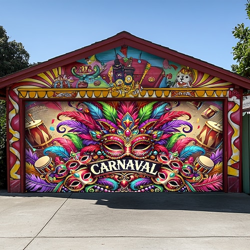 Martedì grasso Copertura per porta del garage Grande appeso Maschera Piume Lusso 3D Da serata All'aperto Sfondi di ripresa Porta d'ingresso Stile Carnevale di Venezia Arredamento per la casa