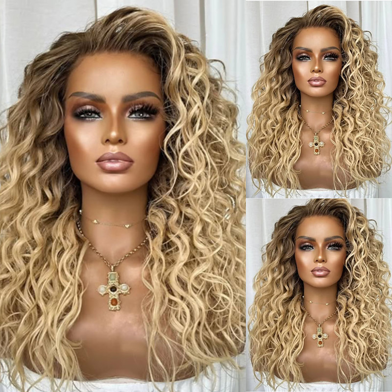 Remy Human Hair 5x5 Closure 13x4 Lace Front Wig Free Part Brazilian Hair Curly Water Wave Blonde Wig 150% 180% Density with Baby Hair Ombre Hair 100% Virgin Glueless Pre-Plucked For Women Long Human