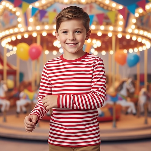 Costume di Carnevale 2026 Ragazzi 3D A righe Maglietta Manica Lunga Stampa 3D Primavera Autunno Sport Moda Streetwear Bambini 4-12 Anni Girocollo Casuale Quotidiano All'aperto Vestibilità regolare