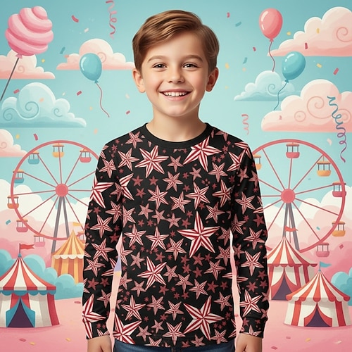 Costume di Carnevale 2026 Ragazzi 3D Grafico Stelle Maglietta Manica Lunga Stampa 3D Primavera Autunno Sport Moda Streetwear Bambini 4-12 Anni Girocollo Casuale Quotidiano All'aperto Vestibilit