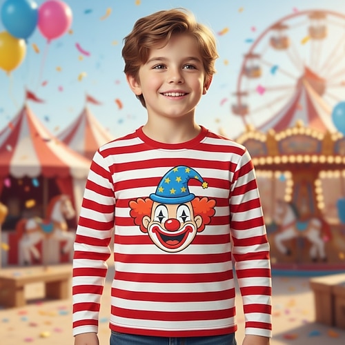 Costume di Carnevale 2026 Ragazzi 3D A righe Pagliaccio Maglietta Manica Lunga Stampa 3D Primavera Autunno Sport Moda Streetwear Bambini 4-12 Anni Girocollo Casuale Quotidiano All'aperto Vestibilit