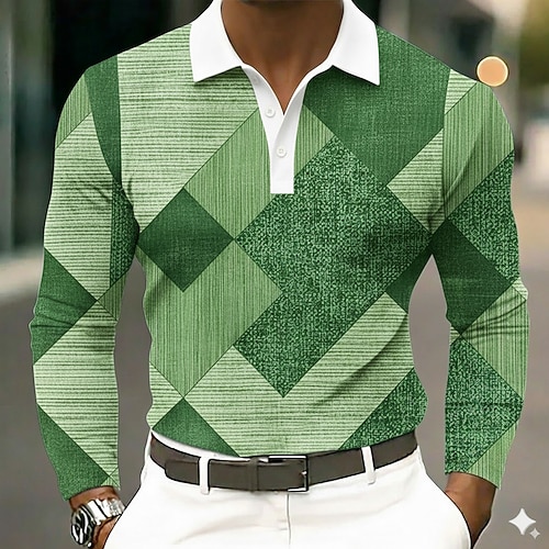Per uomo Blocco di colori Geometrico Polo Manica Lunga Magliette polo Bavero Business Casual All'aperto Athleisure Abbigliamento quotidiano Stampa 3D Bottoni Primavera Autunno Blu Blu marino Viola