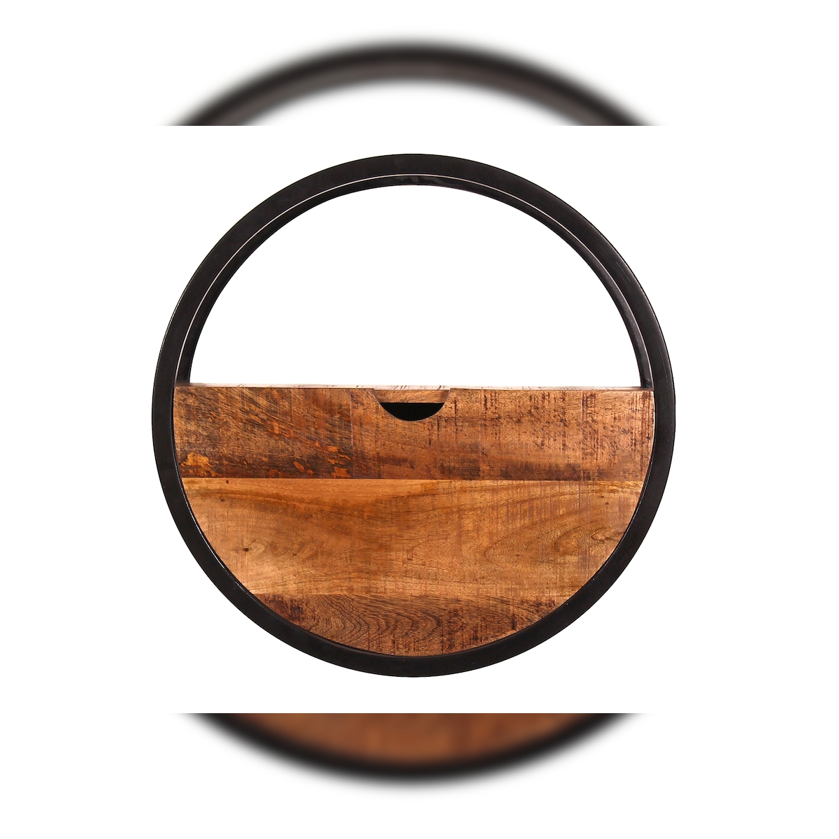 SIT Möbel Wandregal | rund | 1 Schublade | Mango-Holz natur | Gestell Metall schwarz | B 50 x T 20 x H 50 cm | 14366-01 | Serie SIDNEY