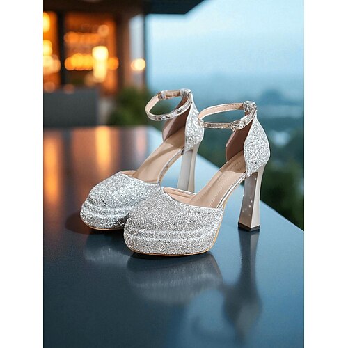 Women's Glitter Latin Dance Heels – Strappy Ballroom Performance Shoes with Buckle for Salsa, Tango Party Events