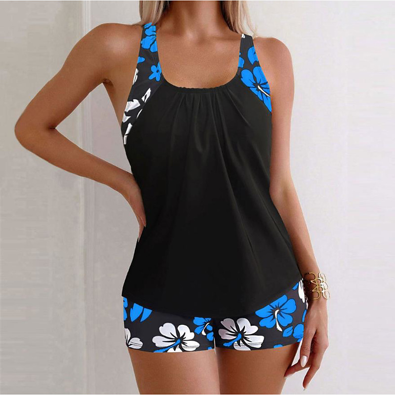 Women's Swimwear Tankini 2 Piece Boy Leg Swimsuit Backless High Waist Vacation Beach Wear Floral U Neck Sleeveless Bathing Suits