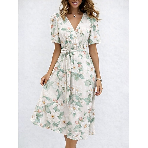 Per donna Abito Midi Abito Floreale Abito Stampato Classico Moderno All'aperto Vacanza Ferie Vestibilità regolare Fiore Manica Corta Scollo a V Nero Blu Reale Marrone Verde Estate