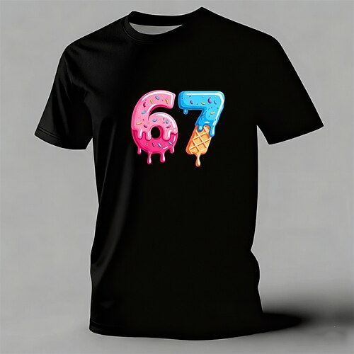 Herren Grafik 67 T Shirt Lustige T-Shirts Kurzarmshirt Kurzarm T-Shirt 3D-Druck Rundhalsausschnitt Hemd Mode Designer Basic Urlaub Straße Täglich Schwarz Gelb Rote Sommer Frühling Bekleidung S M L XL