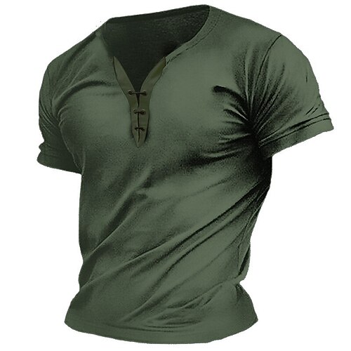 Per uomo Maglietta Manica Corta Scollo a V Primavera Estate Semplice Moda Designer Essenziale Allacciato Vacanza Streetwear Uscire Esercito verde Grigio scuro Nero Maglietta Top per Uomo