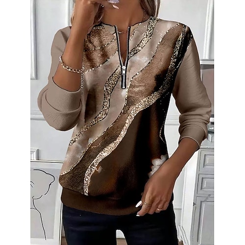 Per donna Felpa Pullover Felpe con cerniera Grafico Astratto Moda Casual Manica Lunga Girocollo Top Regolari Streetwear Abbigliamento Quotidiano Cerniera Stampato Rosso Blu Viola Marrone Verde