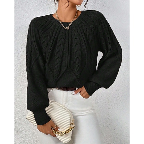 Per donna Felpa Maglione Elegante Moda Streetwear Tinta unica Treccia Girocollo Patchwork Lavorato a maglia Manica Lunga Top Regolari Maglia All'aperto Casa Quotidiano Nero Bianco Autunno Inverno