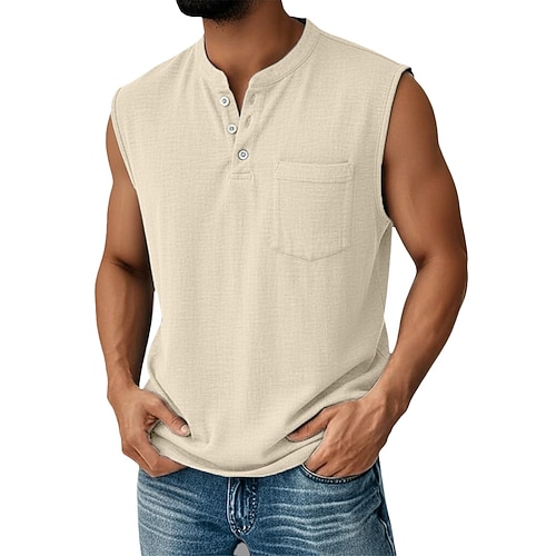 Herren Leinenhemd Tank Top Henley Hemd Weste Ärmellos Henley Sommer Einfach Mode Designer Lässig Knöpfe Täglich Strand Schwarz Weiß Rosa Top T-Shirt für Herren