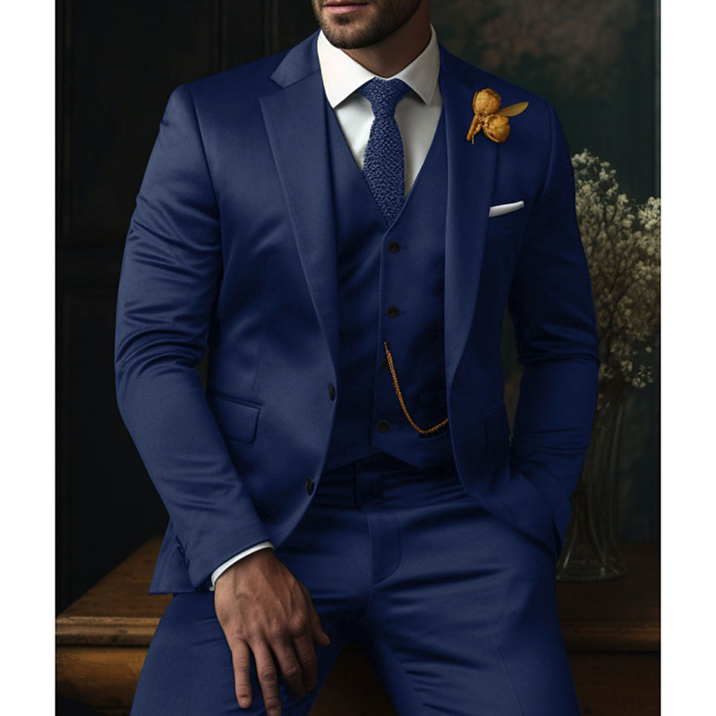 Men's Wedding Suits Notch Black Blue Solid Colored Slim Fit 3 Piece Single Breasted Two-buttons