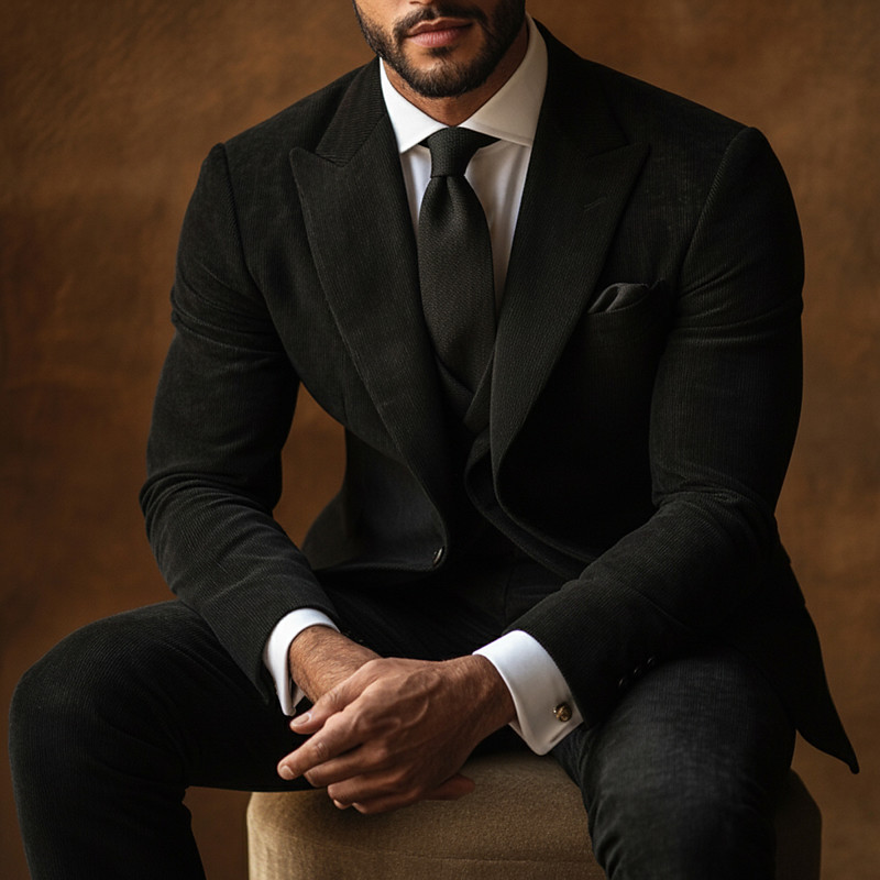 Men's Wedding Casual Business Velvet Suits Peaked Lapel Black Brown Business Dress Solid Colored Standard Fit 3 Piece Single Breasted One-button