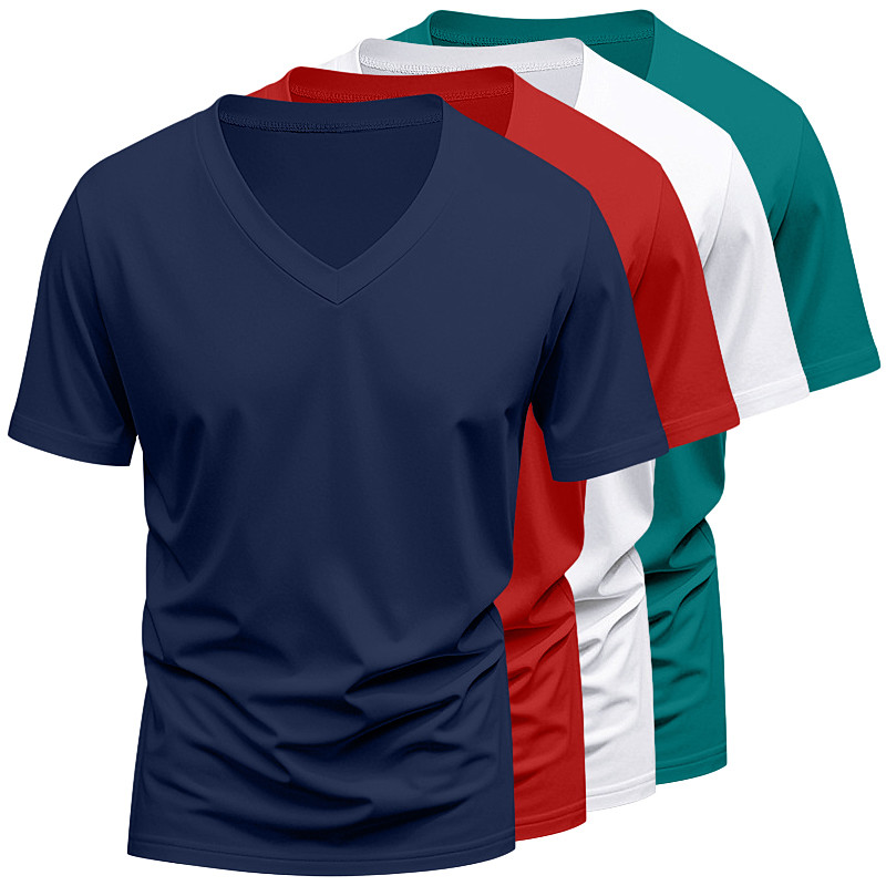 4 Piece Men's T Shirt Tee Top Short Sleeve Short Sleeves V Neck Summer All Seasons Solid Color Plain Designer Basic Modern Contemporary Multi-pack Vacation Street Casual White Blue Top Tee for Men