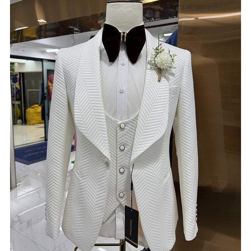 Men's Business Winter Wedding Party Suits Shawl Lapel Black White Party Business Solid Colored Tailored Fit 3 Piece Single Breasted One-button