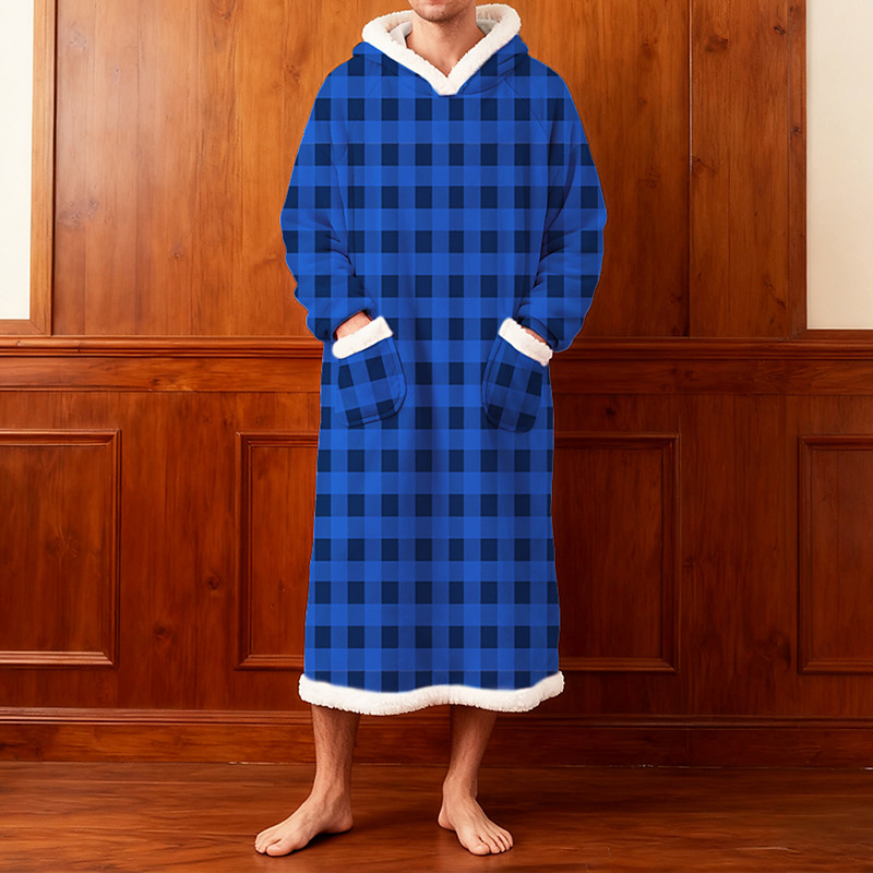 Men's Pajamas Sleepwear Bath Gown Plain Fashion Stylish Classic Home Daily Bed Sherpa Polyester Thermal Warm Comfort Soft Hoodie Long Sleeve Pocket Summer Spring Blue Light Pink
