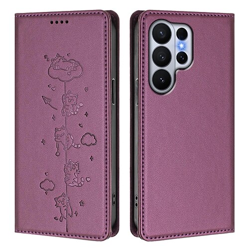 Samsung Galaxy S26 Ultra Plånboksfodral Magnetisk Stängning Konstläder - Lila