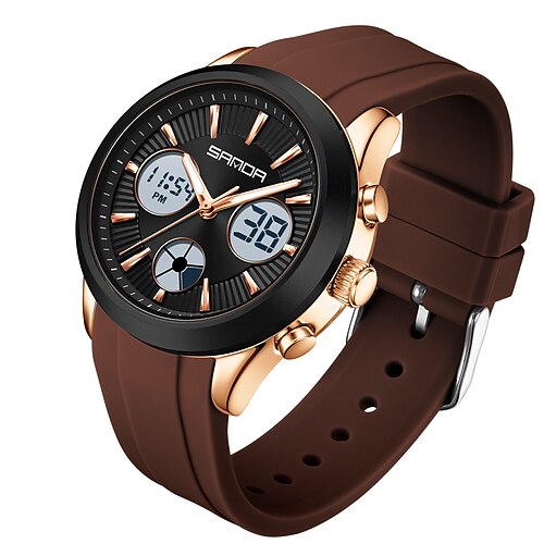SANDA Da uomo Orologio digitale Grande quadrante Esterno Sport Affari Luminoso Cronometro Sveglia Tre Fusi Orari Silicone Guarda