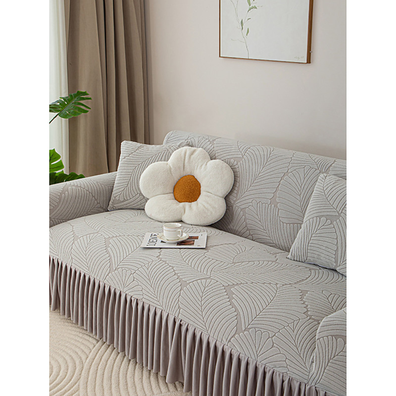Jacquard Elastic Skirt Sofa Cover, Solid Color Premium Four-Season Thickened Non-Slip Universal Slipcover for Sofas