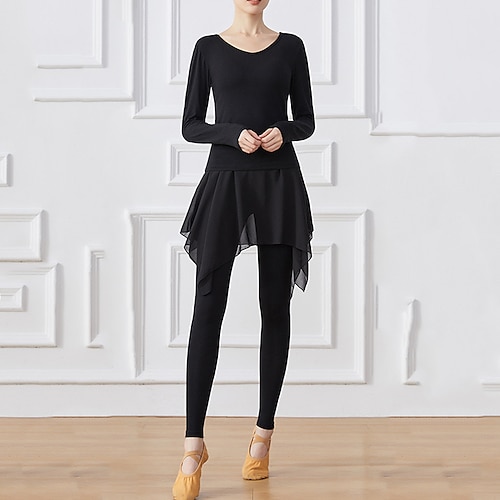 Latein-Tanz Sportkleidung oben Pure Farbe Farbaufsatz Damen Ausbildung Leistung 3/4 Ärmel Hoch Baumwollmischung