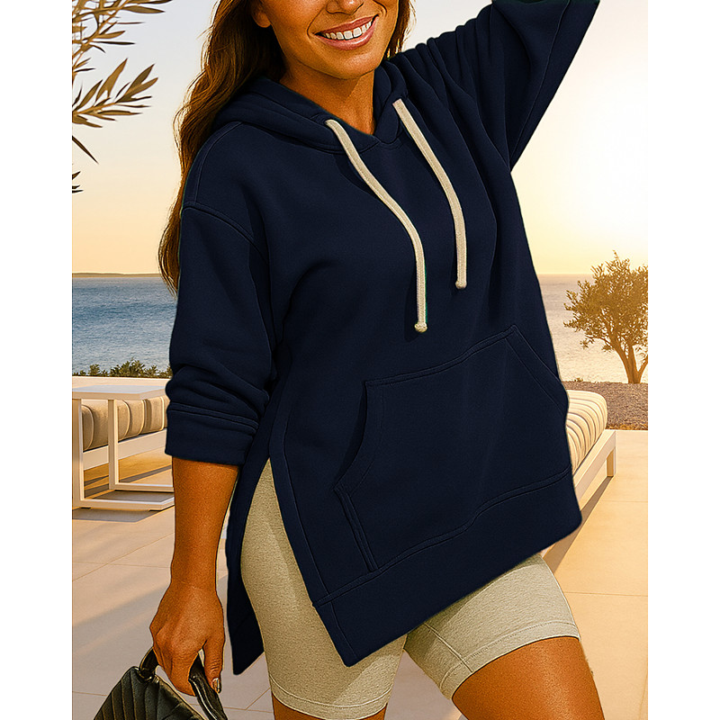 Women's Hoodie Sweatshirt Pullover Sweatshirt Long Sleeve Top Athleisure Fall Solid Colored With Pockets Baggy Oversized Outdoor Travel Vacation Sportswear Activewear Blue White Light Pink