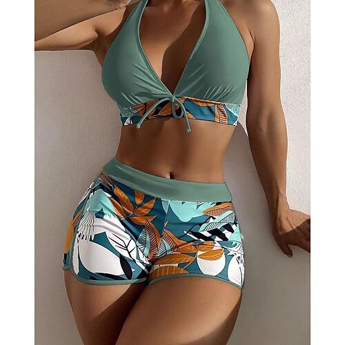 Per donna Costumi da bagno Bikini Due pezzi Shorts Costume da bagno Patchwork Senza schiena Vacanza Abbigliamento da Spiaggia Floreale All'americana Senza Maniche Costumi da bagno