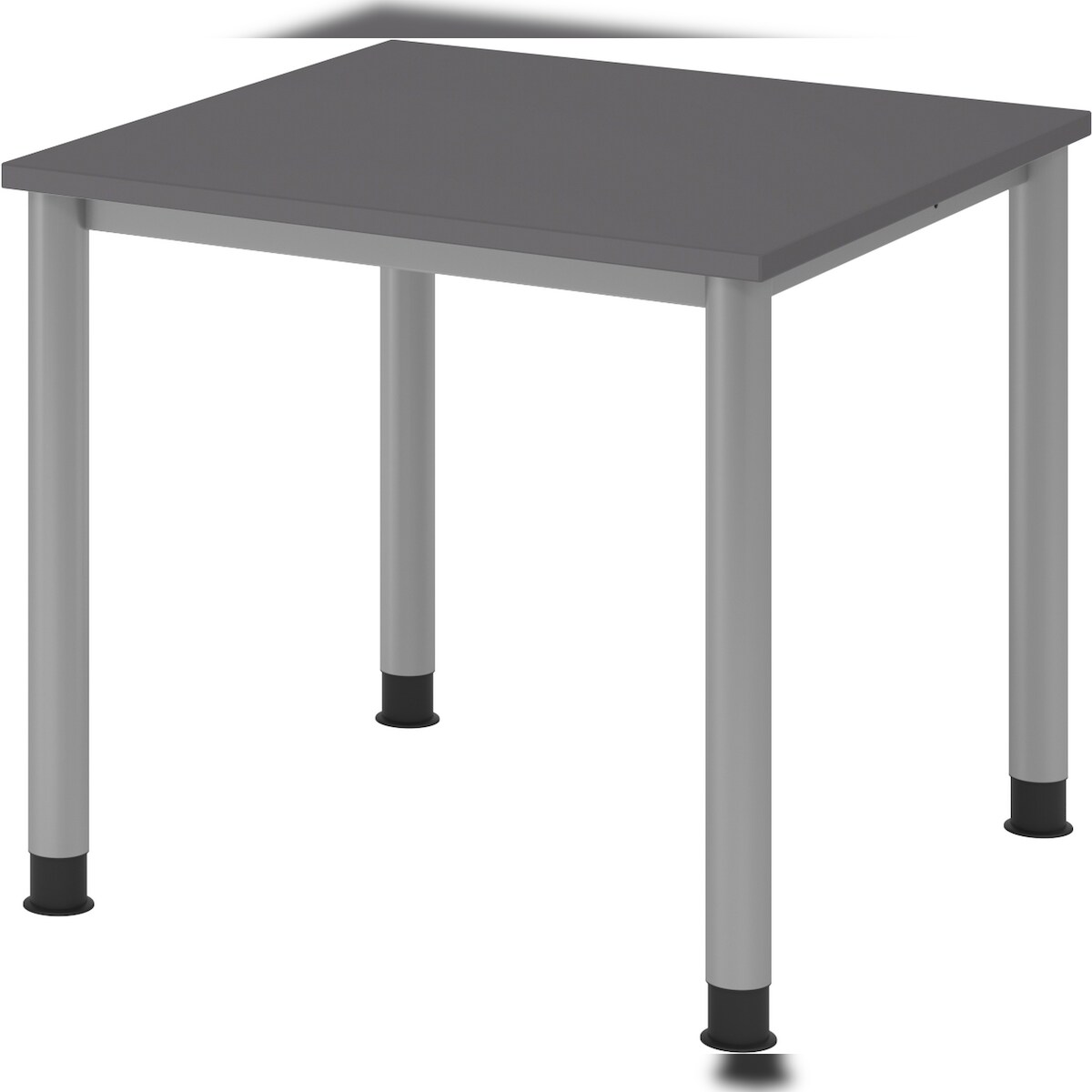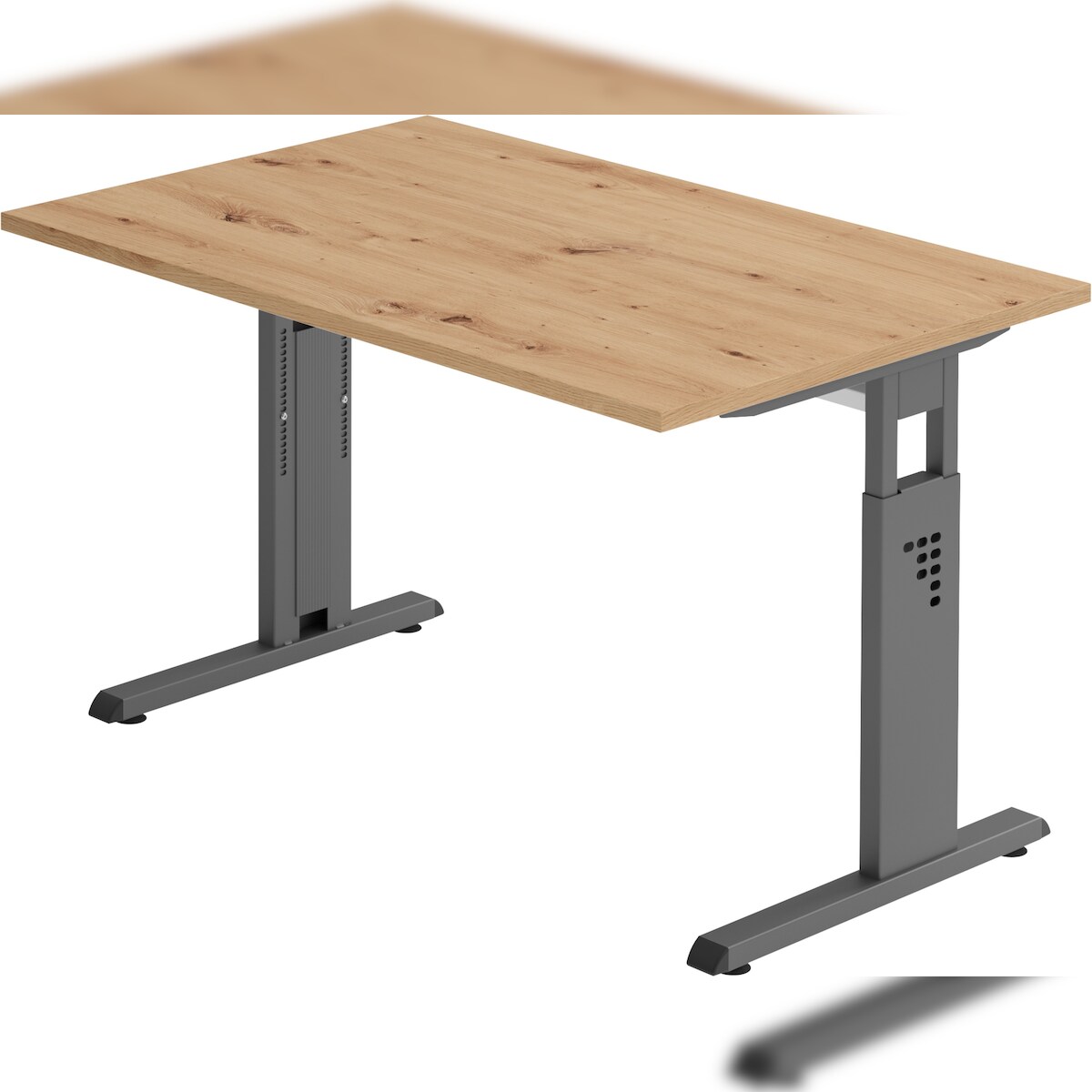 bümö höhenverstellbarer Schreibtisch O-Serie 120x80 cm in Asteiche, Gestell in Graphit - PC Tisch klein für's Büro manuell höhenverstellbar,