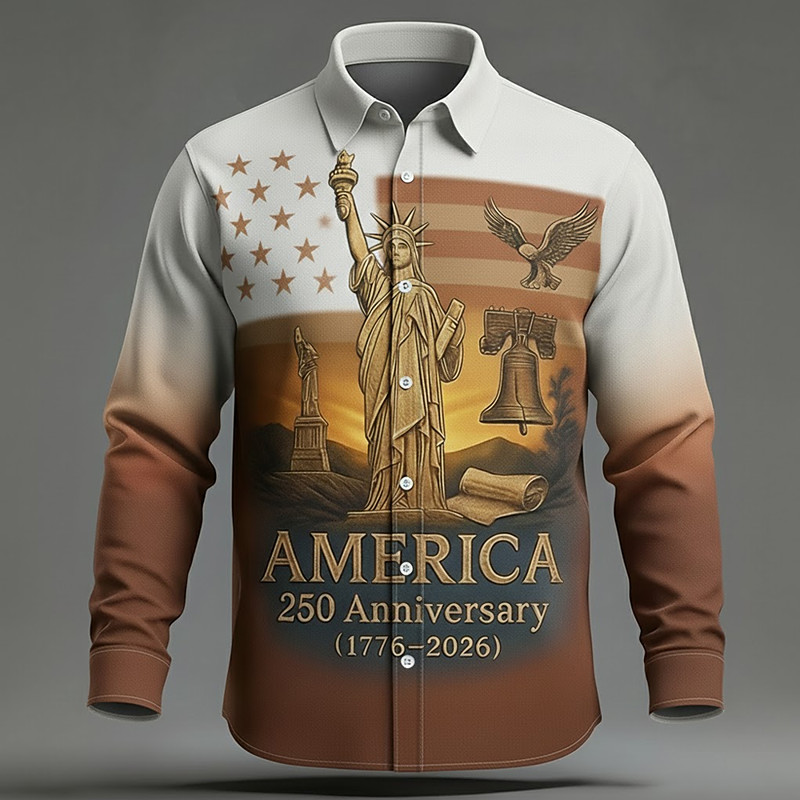 Men's Statue Of Liberty US Flag America's 250th Anniversary Shirt Button Up Shirt Long Sleeve Vintage Retro Holiday Spring Fall Turndown 3D Print Linen Like Shirt Blue White Red