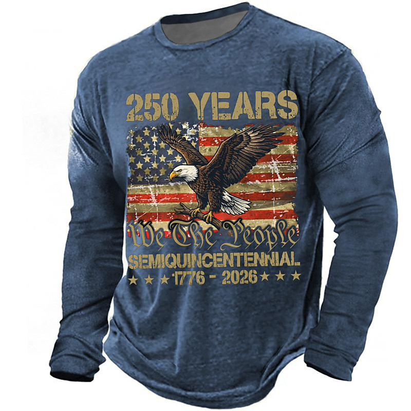 America's 250th Anniversary Men's America's 250th Anniversary T Shirt Long Sleeve T shirt 3D Print Crew Neck Shirt Daily Casual Daily Travel Party Blue Black Red Summer Spring Fall Clothing Apparel S