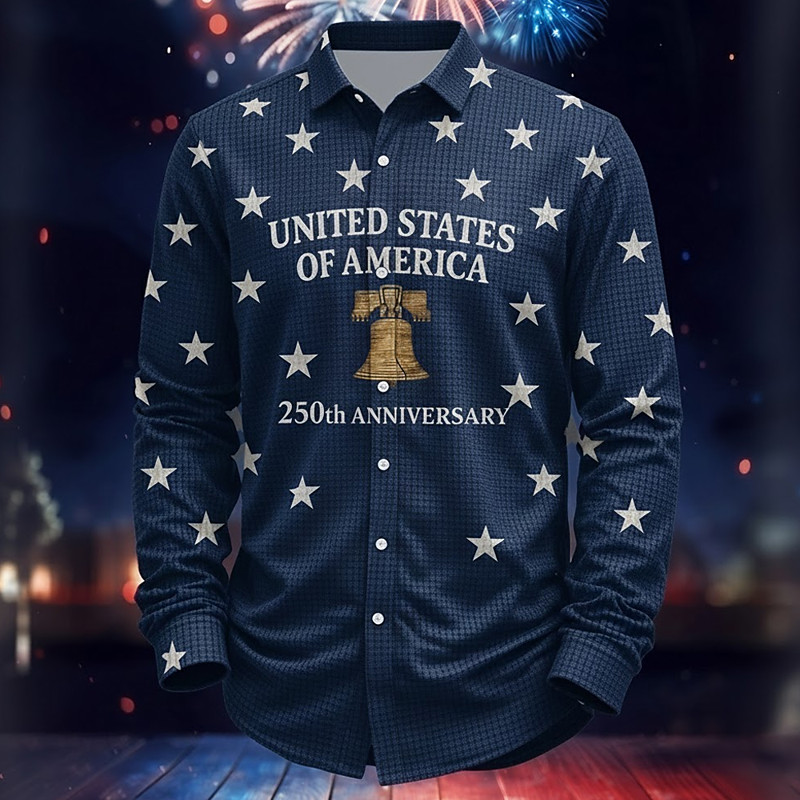 Men's Patriotic Freedom America's 250th Anniversary Shirt Waffle Shirt Casual Shirt Long Sleeve Vintage Retro Dailywear Holiday Summer Spring Turndown 3D Print Textured Button Up Shirts White Red
