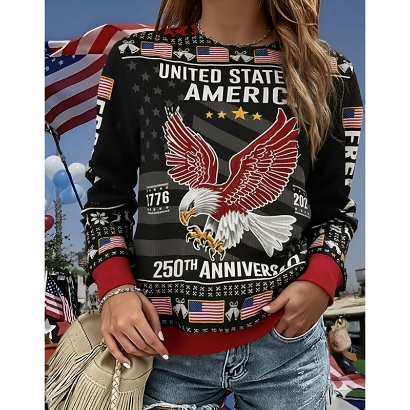 American 250th Women's Textured Pullover Sweatshirt Graphic Geometric Vintage Fashion Casual Long Sleeve Crew Neck Regular Tops Casual Home Work Black Spring Fall Winter