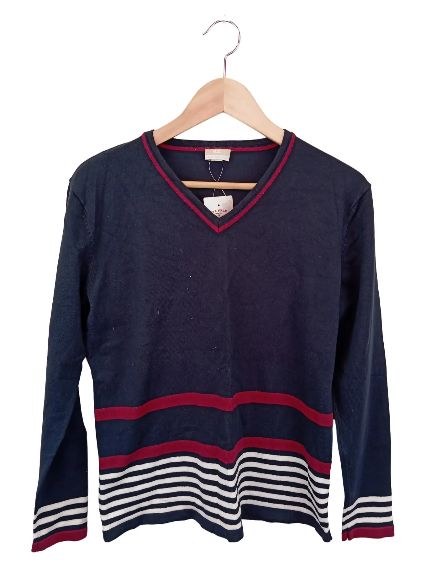 MAC JEANS Damen Pullover Gr. 40 Blau Gestreift Casual