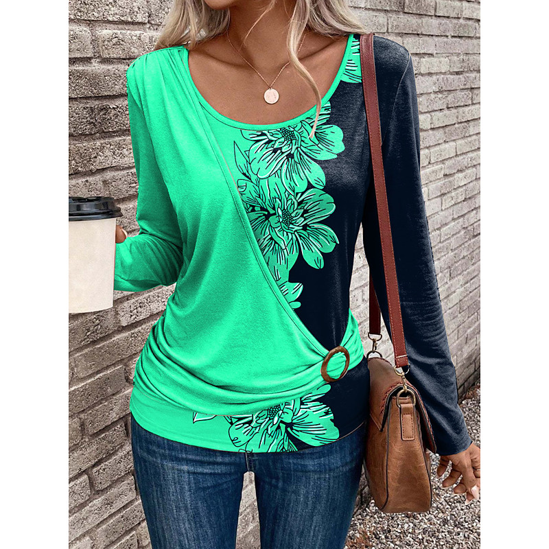 Women's T Shirt Floral Graphic Stylish Casual Long Sleeve Crew Neck Regular Tops Daily Patchwork Print Pink Blue Orange Green Summer Fall Winter
