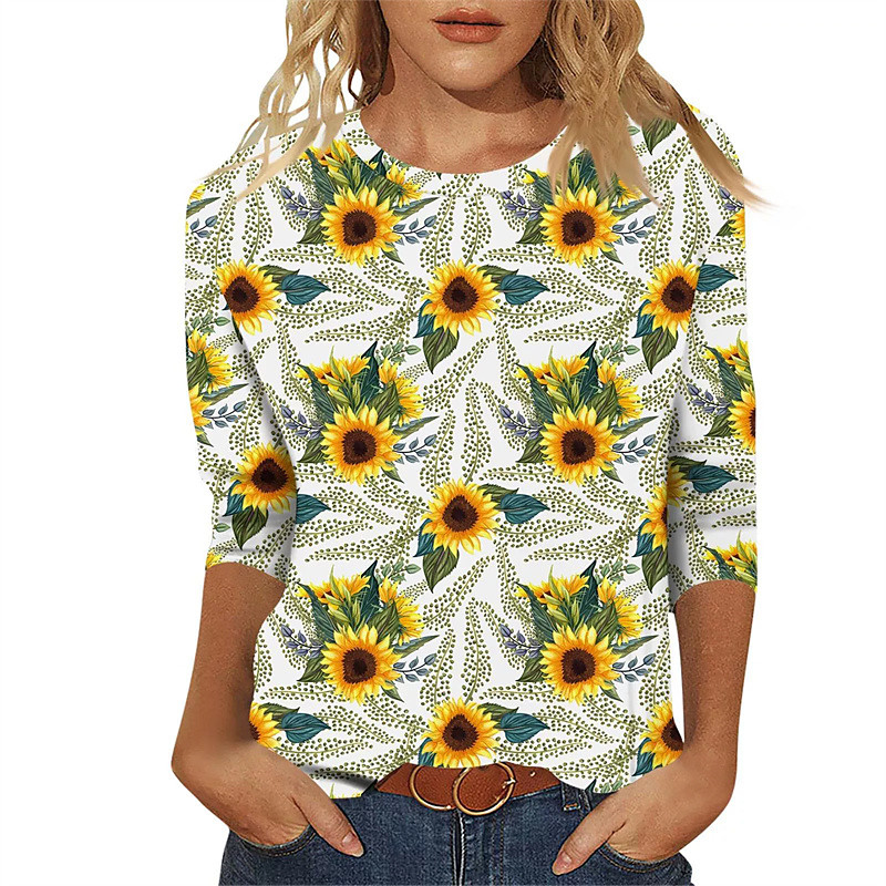Women's Shirt Floral Daily Casual 3/4 Length Sleeve Crew Neck Regular Tops Daily Holiday Print Blue Summer Spring Fall