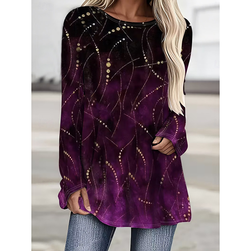 Women's T shirt Crew Neck Long Sleeve Tunic Casual Color Block Print Regular Tops Daily Pink Navy Blue Blue Purple Spring Fall