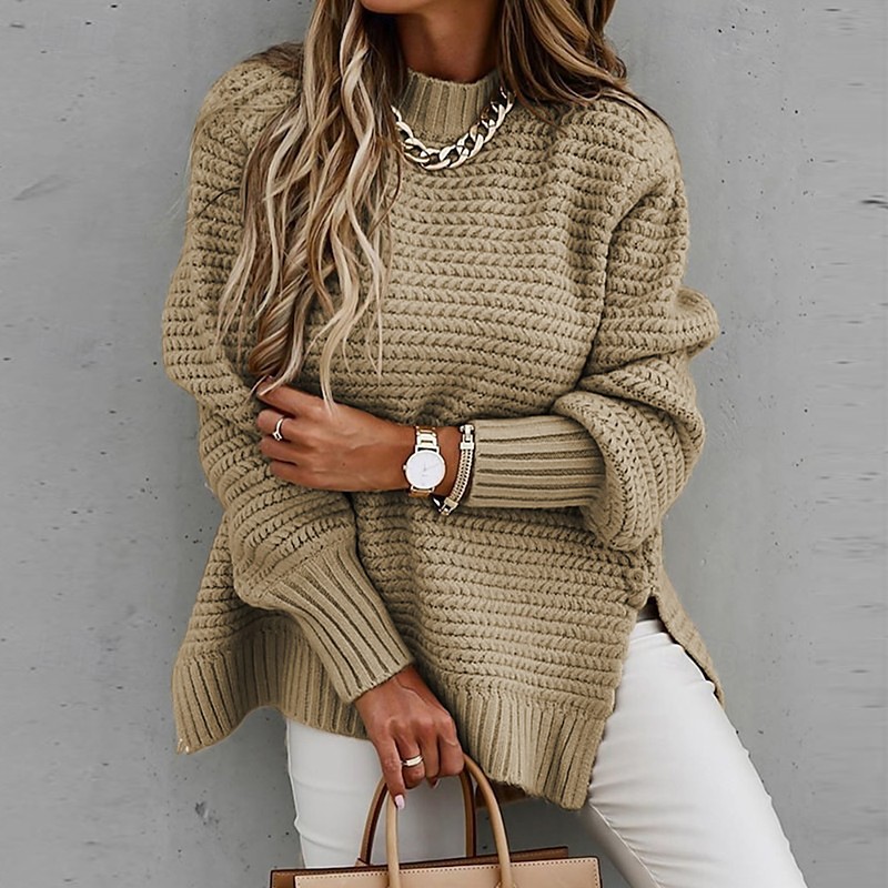 Women's Sweater Fashion Casual Pure Color Ribbed Crew Neck Mock Neck Knitted Long Sleeve Regular Tops Knit Outdoor Daily Weekend Black Pink Fall Winter