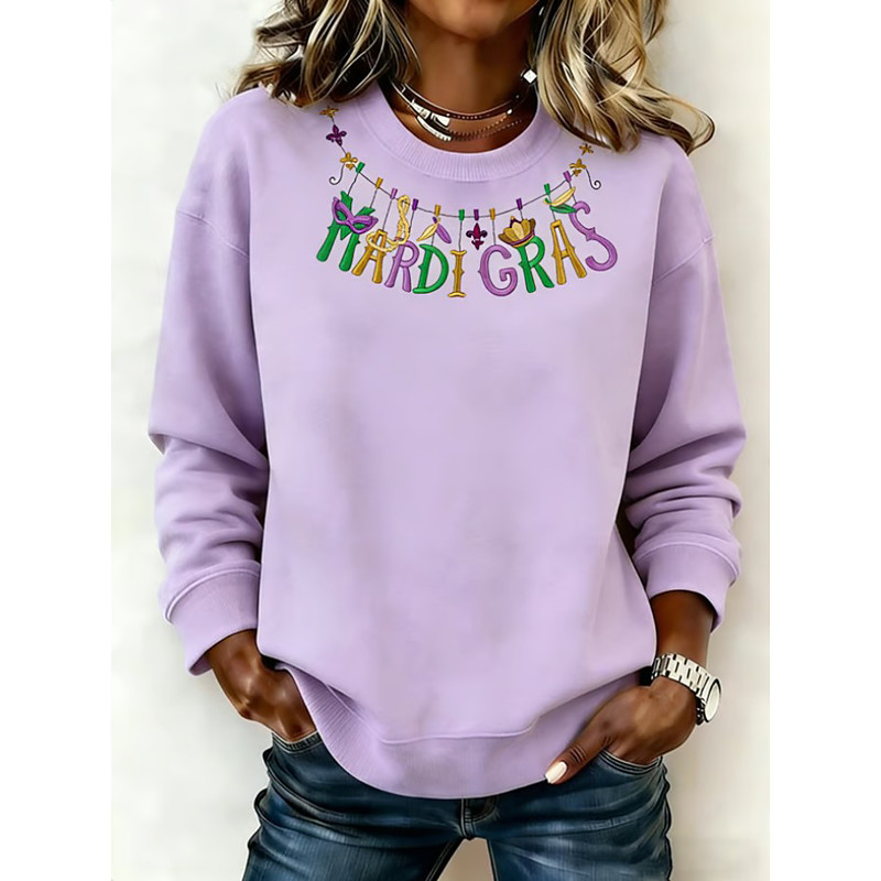 Women's Pullover Sweatshirt Graphic Shamrock Classic Casual Long Sleeve Crew Neck Regular Tops Party Evening Wear Party Outfits Print White Light Purple Spring Fall