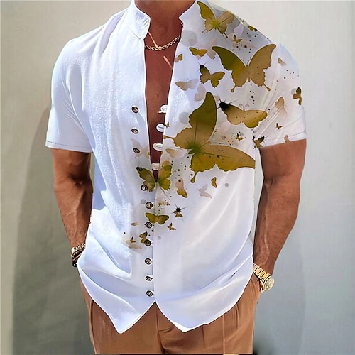 Per uomo Farfalla Camicia Camicia con Bottoni Manica Corta Moda Streetwear Designer All'aperto Casuale Quotidiano Primavera Estate Collo alla coreana Stampato Giallo Blu Viola Verde Grigio