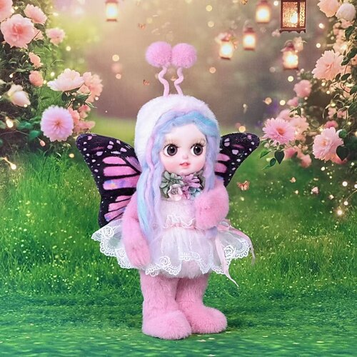 bambola fata farfalla incantata, bambola d'arte da collezione in peluche con ali antenne figura fantasy da esposizione