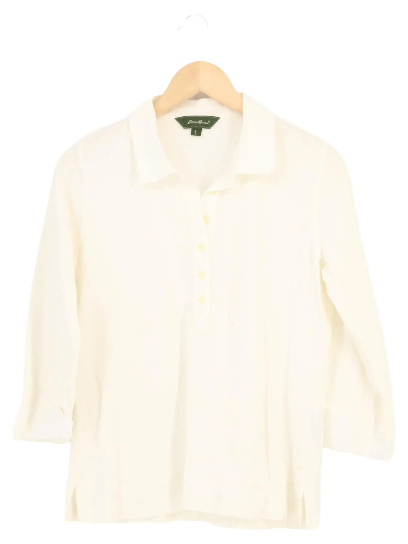 EDDIE BAUER Damen Poloshirt Größe L Creme Baumwolle Top