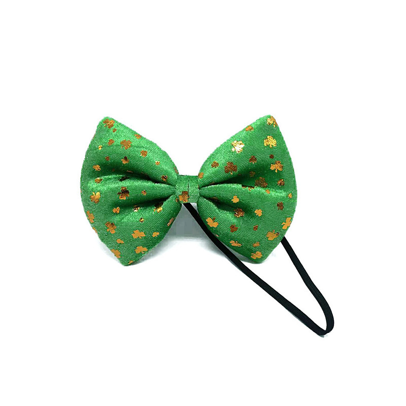 Men's St. Patrick's Day Sequin Bow Tie, Green Polyester Fabric with Shamrock Festive Patterns, Adjustable Dress Bowtie for Irish Party, Parade, Bar Holiday Celebrations