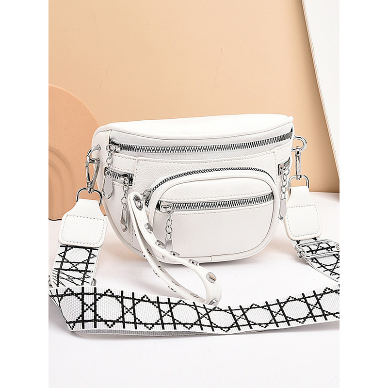 Women's Burgundy Faux Leather Crossbody Chest Bag with Multi Zipper Pockets, Wide Strap Silver Hardware, Stylish Hands-Free Travel Purse for Daily Wear Christmas Holiday Outfits