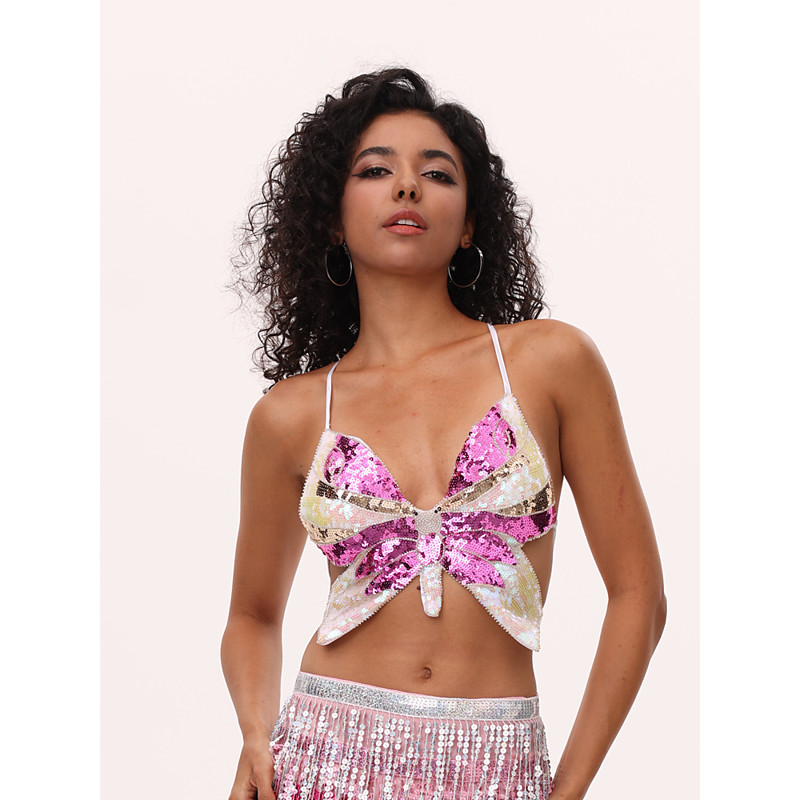 Mardi Gras 2026 Butterfly Carnival Top Bralette Sexy Sequins Adults' Women's Carnival Mardi Gras Rio Carnival Party Performance Easy Carnival Costume Dress Up